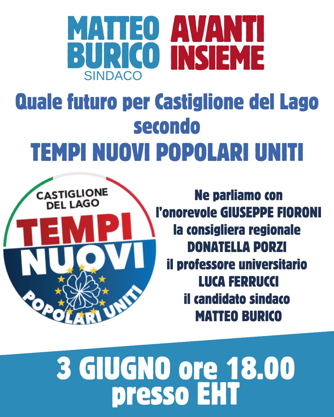 Domenica 2 giugno ore 19.30 Partecipa all’evento sul Focus Economia del Territorio Interviene CERVED La Coalizione BURICO SINDACO e il candidato Sindaco MATTEO BURICO Ore 19.30 presentazione Ore 20.30 light dinner - presso Ex Aeroporto Eleuteri - Castiglione del Lago - Clicca qui per partecipare:...